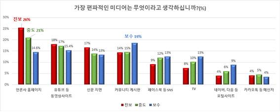 편파 매체, 진보는 언론사 보수는 커뮤니티 게시판 꼽아