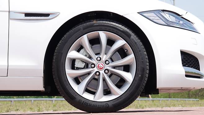 245/45R18 콘티넨털 타이어와 서스펜션, 그리고 사륜구동 시스템은 특히 코너에서 빛을 발했다. 반경이 짧은 코너를 빠르게 진입했다. 조금 빠른 속도였지만 재규어 XF는 여유 있게 코너를 공략해 나갔다. 흔들림은 크지 않았고 조향은 정확했다. 필요에 따라 안쪽 바퀴에 제동을 가하는 토크벡터링도 한몫을 한 결과다.