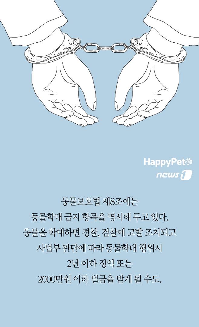 (서울=뉴스1) 최서윤 기자,김일환 디자이너 = 동물보호법상 동물을 학대하면 2년 이하 징역이나 2000만원 이하 벌금에 처해진다. 하지만 여전히 학대의 범위를 잘 모르거나 동영상을 올리는 등 간접 학대를 하는 사람들도 있다. 이 모두 동물보호법상 고발 가능한 행위들이다. 동물학대의 범위는 어디까지일까?
