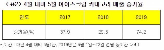 올해 일찍 찾아온 무더위도 이천쌀콘 판매에 도움이 됐다. 4월 말부터 시작된 무더위로 아이스크림을 찾는 소비자가 시장의 예상보다 많았다. 기상청에 따르면 지난달 최고 기온이 25℃ 이상이었던 날은 총 19일에 달했다. 역대급 무더위였던 지난해 5월보다도 일주일이 더 많았다. 이마트24가 매년 4월 대비 5월 아이스크림 매출 증가율을 분석한 결과 2017년 37.9%, 지난해 29.5%로 20~30%대 증가율을 기록하다가 올해는 74.2%로 증가율이 크게 높아졌다.