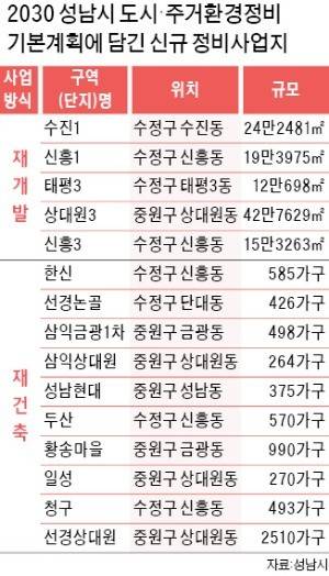 노후 주택이 밀집한 경기 성남시 구시가지를 바꿀 재개발·재건축 사업의 밑그림이 새로 나왔다. 2030년까지 5개 구역을 재개발하고 아파트 10개 단지를 재건축한다.