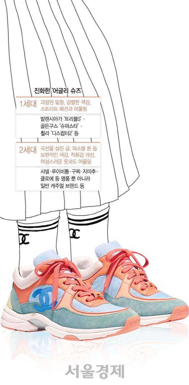 투박한 굽에 강렬한 색감으로 '아빠 등산화'란 별명이 있었던 '어글리 슈즈'가 디자인을 보다 대중적으로 바꾸며 20~30대는 물론 그 이상의 연령층에게도 인기를 끌며 스테디 아이템으로 자리잡고 있다.