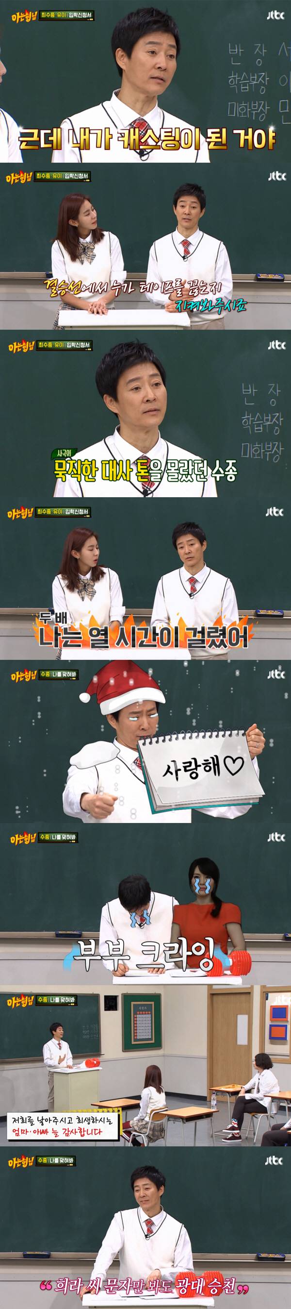 13일 방송된 JTBC '아는 형님'에는 최근 인기리에 종영한 KBS2 '하나뿐인 내편'의 배우 최수종과 유이가 출연했다.