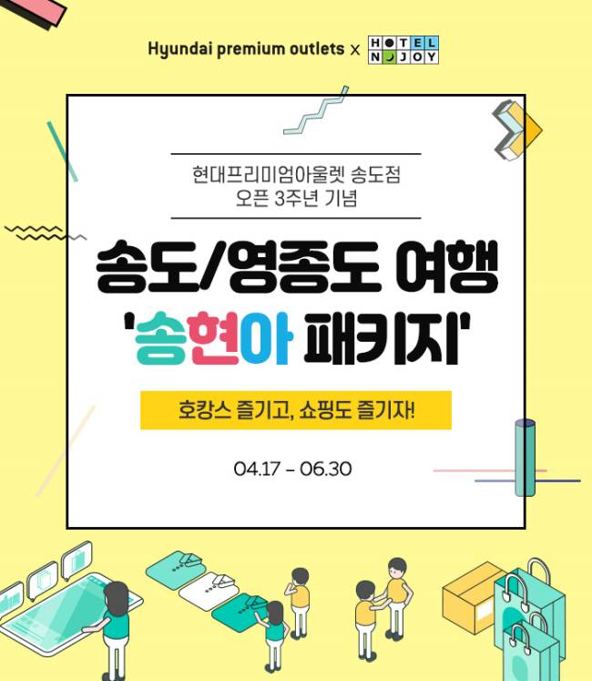 메이트아이의 호텔예약 플랫폼 '호텔엔조이'가 현대프리미엄아울렛 송도점 오픈 3주년을 기념해 '송.현.아 패키지' 행사를 개최한다고 17일 밝혔다.