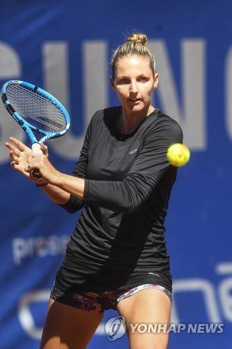 epa07493802 Kristyna Pliskova of the Czech Republic in action against Ylena In-Albon of Switzerland during their first round match at the Samsung Open WTA tennis tournament in Lugano, Switzerland, 09 April 2019. EPA/ALESSANDRO CRINARI