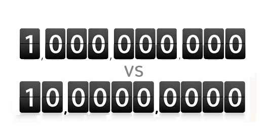 반면 우리에겐 이런 표기법이 그다지 편리하지 않다. (익숙함과 편리함은 별개의 문제이다.) 왜냐하면 우리의 숫자체계에서는 네 자리마다 새로운 단위가 생기기 때문이다. 우리는 일, 십, 백, 천, 만을 숫자의 기본단위로 한다. 만이 열 개 모이면 십만, 백 개 모이면 백만, 이런 식이다. 만이 만 개 모이면 새 단위가 필요하다. 바로 일억이다. 그래서 우리에게는 억 단위가 큰 숫자의 대명사이다. 영어에서는 백만이 새로운 숫자단위이기 때문에 큰 숫자의 대명사이다. ‘백만장자’라는 말이 그래서 나왔다. 우리에게 백만은 특별한 의미가 없다. 만이 100개 있을 뿐이다. 우리에겐 ‘억만장자’가 더 솔깃하다.