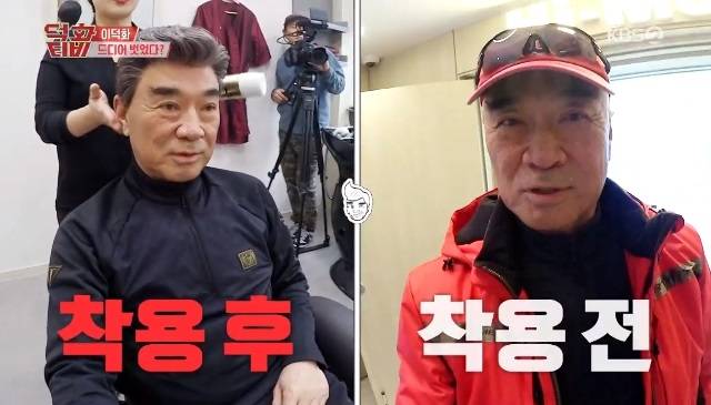 3월 12일 방송된 KBS 2TV ‘덕화티비’에서 이덕화는 가발착용 전후를 공개했다.