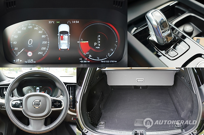 앞바퀴와 뒷바퀴를 각각 가솔린 엔진과 전기모터가 담당하는 4륜구동 시스템이 적용된 XC60 T8은 전기모터의 힘만으로도 최대 26km를 달릴 수 있다. 이 정도면 시내 주행에는 문제가 없을 것으로 보인다. 여기에 주행모드를 순수 전기차 모드인 '퓨어'를 선택할 경우, 제법 큰 덩치에도 불구하고 저속에서 중고속으로 넘어가는 느낌이 매끈하며 순간가속력 또한 만족스러운 수준이다. 무엇보다 그 어떤 소음과 진동 없이 고요함속에 도심을 질주할 수 있다.