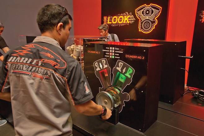 전시실이 시작되는 2층은 1903년부터 40년대 까지의 할리데이비슨의 역사에 따른 기념비적 모델들을 볼 수 있는 전시실과 할리데이비슨의 다양한 엔진을 볼 수 있는 엔진룸, 레이스 역사를 만날 수 있는 클럽 앤 컴페티션, 그들의 문화를 담은 커스텀 컬처와 다양한 연료탱크 디자인이 나열된 탱크월 등 각양각색의 전시품이 시선을 사로잡는다.