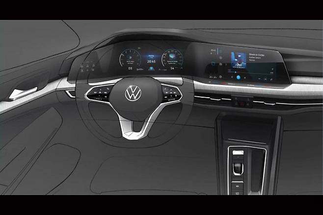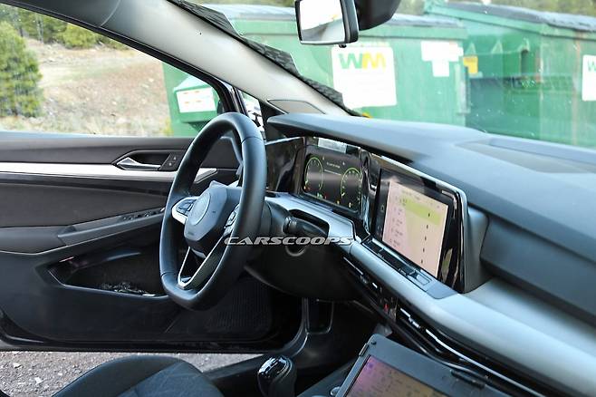 폭스바겐 8세대 골프의 실내가 처음 노출됐다. 올해 가을 선보일 8세대 골프 테스트카의 실내는 폭스바겐이 공개한 8세대 골프 실내 스케치와 일치하는 모습으로 그대로 양산될 가능성이 높다. 전자식 계기판과 동일한 높이에 대형 인포테인먼트 모니터가 위치한다.
