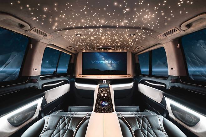 천장에는 은하수를 보는 듯한 스타라이트 조명을 시공해 VIP 의전용 밴으로서의 럭셔리함을 극대화했으며 RGB 컬러의 실내 무드등은 내부 분위기를 취향에 따라 다르게 연출 가능하다. 이 밖에도 아이퓨리 공기청정기, 미니 냉장고도 운전석 중앙에 비치되어 있다.