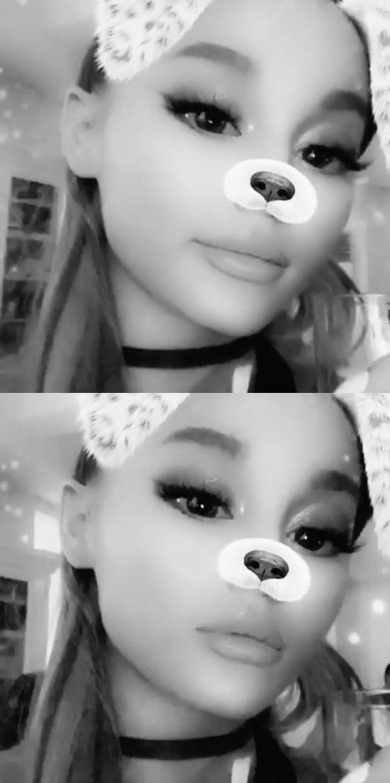 게재된 영상 속 아리아나 그란데는 스마트폰 어플리케이션을 활용해 귀여운 강아지로 변신했다.
