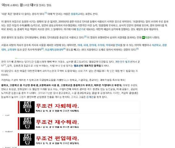 "넓은 의미의 지잡대에는 수도권도 포함된다." (구스위키)