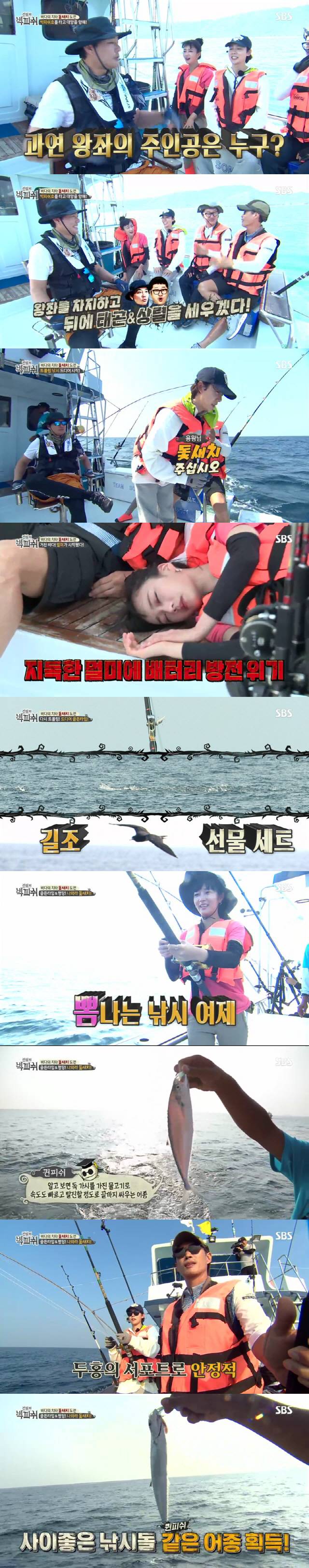잠시 후 낚싯대에 나비가 앉고, 배 주변으로 새떼가 몰려오는가 하면 수면 위로 보일링이 보이는 길조 현상이 차례로 나타나 드림팀에 희망을 안겨주었다. 얼마 지나지 않아 입질이 오자, 지상렬은 보미에게 낚싯대를 넘겨주었다. 이에 낚시 여제 보미는 트롤링 낚시의 손맛을 제대로 체험했다. 보미가 낚아 올린 물고기는 은빛이 찬란한 '퀸피쉬'였다. 이후 정두홍의 서포트로 진우 역시 '퀸피쉬'를 낚아 올리면서 두 사람은 사이좋은 '낚시돌'에 등극했다.