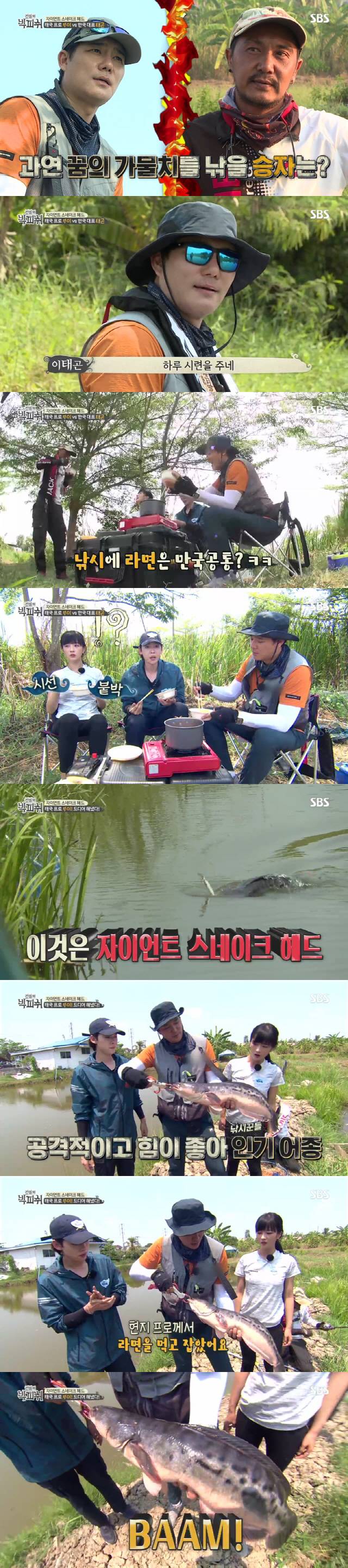 뚜이와 라면을 나눠먹으며 다 같은 마음으로 응원을 하던 중 뚜이의 낚싯대에 입질이 오기 시작하고, 그토록 보기 힘들다던 '자이언트 스네이크 헤드'가 얼굴을 내비쳤다. 이태곤 일행은 비록 직접 잡지는 않았지만 흡사 뱀같이 생긴 '자이언트 스네이크 헤드'의 공격적인 실체를 보고 놀라워했다. '자이언트 스네이크 헤드'를 낚아 올리는 장면은 이날 4.8%까지 치솟으며 최고의 1분을 차지했다.
