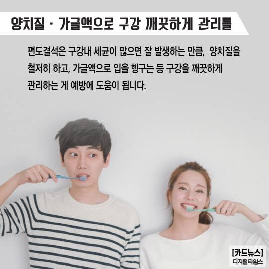 구강을 깨끗하게 관리하는 게 예방에 도움이 됩니다.