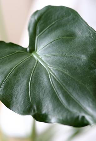 | ▲ 알로카시아 잎 막상 이렇게 들여다보면 알로카시아 잎은 특별하지 않다. 하트 모양이고 아래 부분이 뾰족하다. |