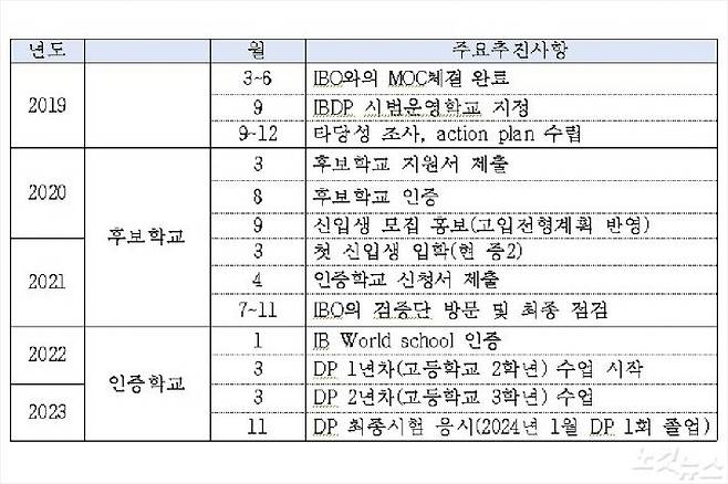 현재 중학교 2학년이 적용대상인 'IB 한국어 DP'는 이들 학생이 고등학교 2학년이 되는 2022년부터 본격 운영된다.