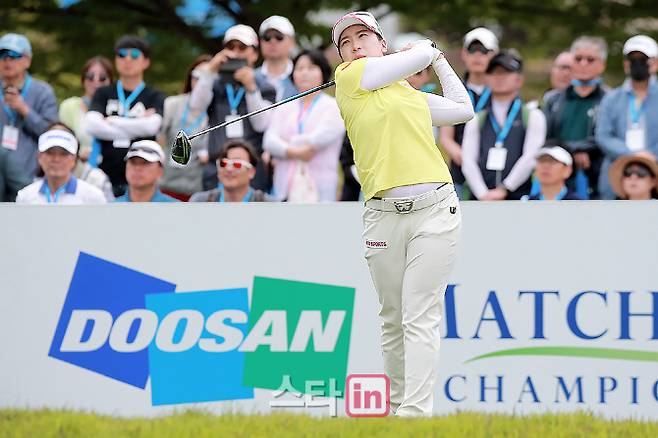 [이데일리 골프in=춘천 박태성기자] 18일 강원도 춘천에 위치한 라데나 골프클럽(파72ㅣ6246야드)에서 KLPGA 2019시즌 아홉 번째 대회이자 매치 대회인 '2019 두산 매치플레이 챔피언십'(총상금 7억 원, 우승상금 1억 7천5백만 원) 16강에 이어 8강전이 열린가운데,김지현2(28.롯데)이 1번홀 강한 티샷을 날리고 있다.