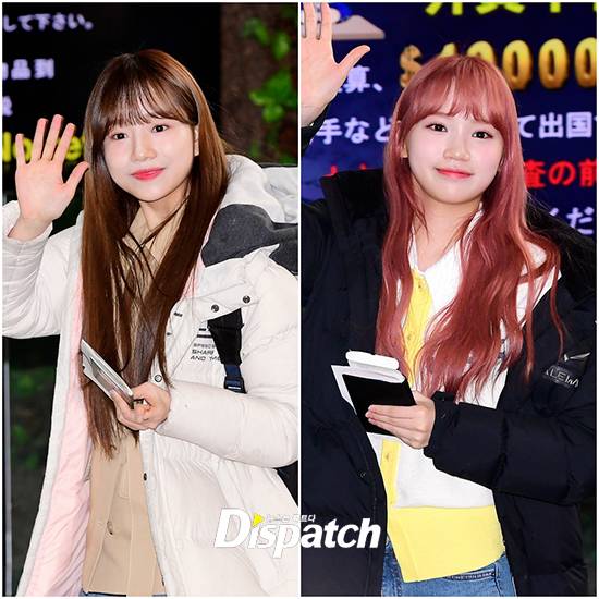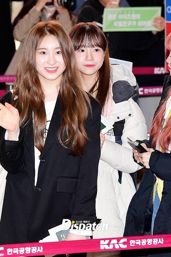 '아이즈원' 조유리와 김채원은 이날 깜찍한 비주얼로 공항 시선을 사로잡았다. 해맑은 미소로 팬서비스도 선보였다.