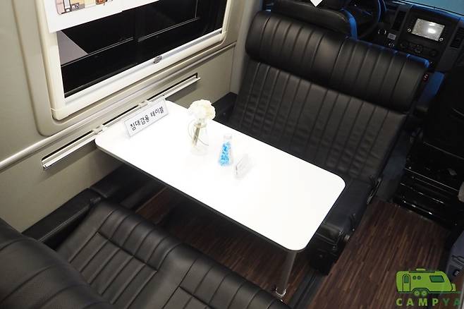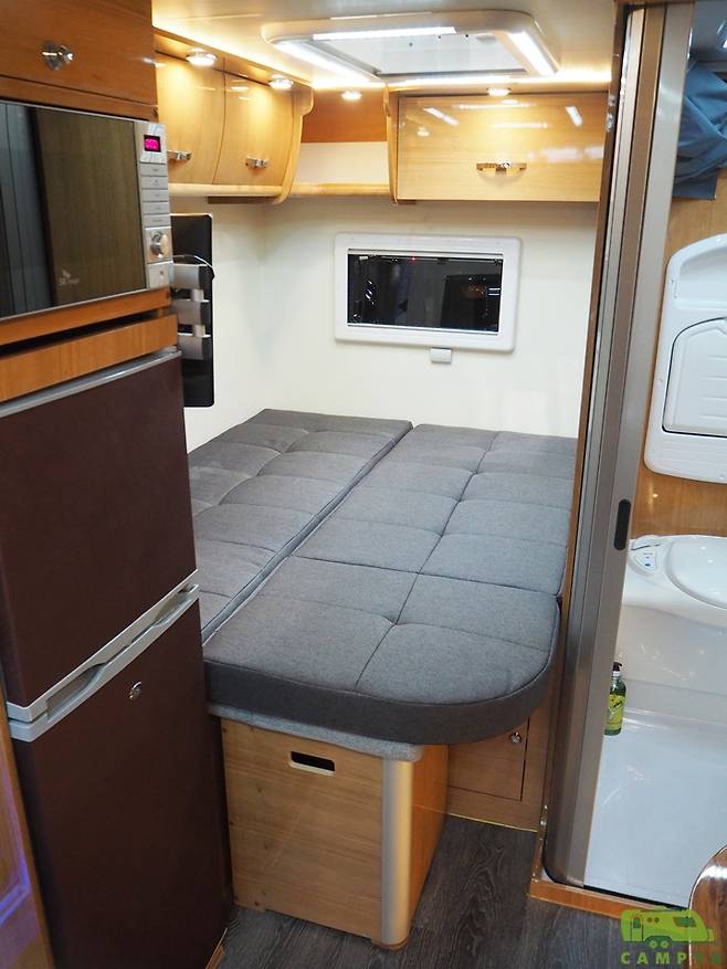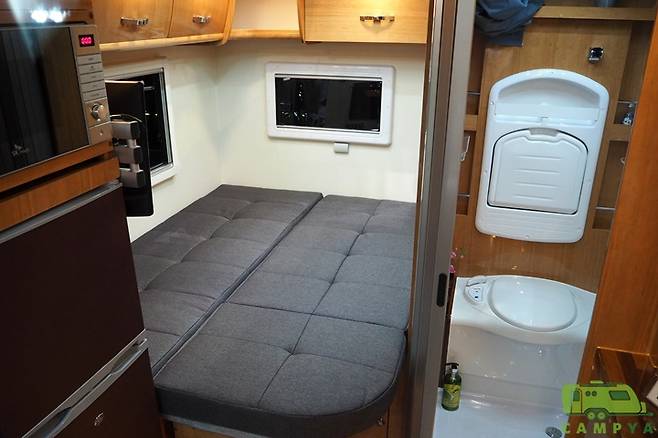 전방에 설치된 소파는 주행 시 총 4명이 앉을 수 있는 좌석의 역할을 한다. 정박시에는 2열에 해당하는 부분을 후방으로 회전시켜 서로 마주보는 구조의 소파로 활용할 수 있다. 그리고 취침시에는 풀-플랫 형태로 전개시켜 2명의 성인이 누울 수 있는 크기의 침대로 변신 가능하다. 소파 변환침대의 크기는 길이 1,900mm, 폭 1,000mm다.