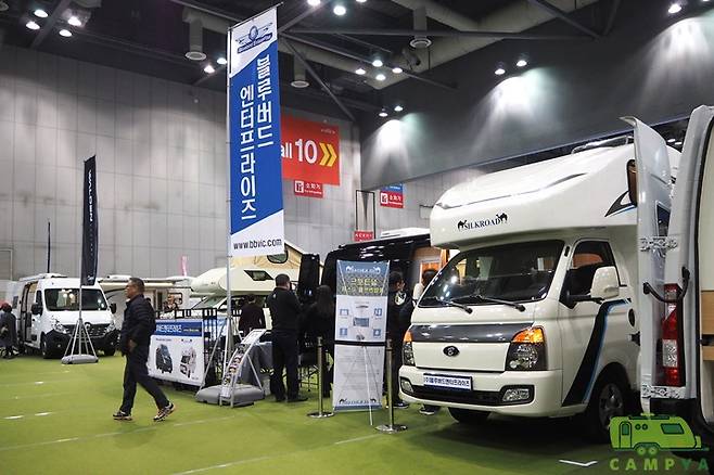 2019 서울모터쇼가 3월 28일 프레스데이를 가진지 벌써 일주일이 지난 오늘(4일), 서울모터쇼 전시장 내에 특별한 전시가 추가로 마련되었다. 그것은 바로 캠핑카 전용의 전시 공간이다. 국내 캠핑카 시장은 2010년대를 기점으로 성장을 거듭하고 있는 중이다. 또한 최근 몇 년간 수입 모터홈이나 카라반에 비해 취급과 유지관리가 용이한 1톤급 캠핑카들이 급격한 성장세를 보이며 캠핑카 시장을 주도하고 있다. 이번 2019 서울모터쇼에는 다수의 캠핑카 제작/수입사들이 참가하여 눈길을 끌고 있다.