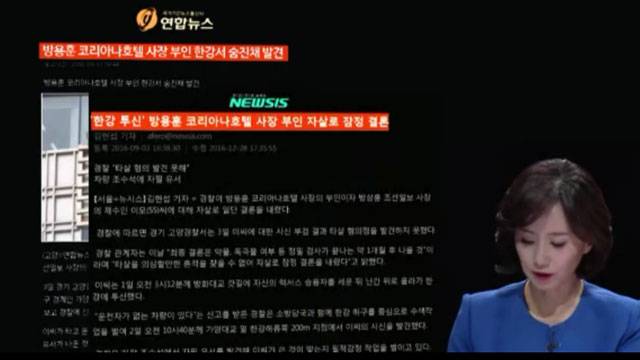 '저널리즘토크쇼J'가 KBS 내부 시스템을 통해 확인해본 결과 취재를 했지만 기사를 쓰지 않았던 것으로 드러났다. KBS 기사 작성 시스템에는 2016년 9월 사건 발생 당일 당직 촬영기자 2팀과 취재기자가 가양대교와 경기 고양경찰서에 가서 시신 발견 현장과 이 씨가 타고왔던 승용차를 촬영하고 형사과장 등을 취재한 기록이 남아있다. 당시 취재 기자는 취재 내용을 보고 형태로 기사작성시스템에서 정리해 올렸다. 제목은 '코리아나호텔 부인 변사 발견'이었다. 하지만 취재 내용은 KBS 뉴스를 통해 보도되지 않았다. 취재영상은 사용이 금지됐고, 보고 내용은 기사 작성 시스템에서 삭제됐다. 언론사 기사의 경우 사실 관계가 틀릴 경우 사후에 삭제하는 경우가 종종 있지만, 출고 목적이 아니라 내부 보고를 삭제하는 것은 매우 이례적이다. 당시 비보도를 결정하고 보고 삭제를 지시한 건 사건 담당인 사회부장이었다. '저널리즘토크쇼J' 35회차 방송을 준비하던 소속 신지원 기자가 지난 15일 당시 부장에게 삭제 경위를 물었다. 그는 "방용훈 부인이라는 사실이 확실하지 않았고, 자살보도준칙에 따라 보도하지 않았던 것으로 기억난다"고 답했다.