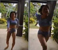 영상에는 김신영이 비키니 수영복을 입은 채 도움 닫기를 하는 모습이 담겨있다.
