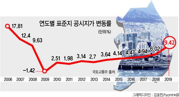 [2019 표준지 공시지가①] 표준지 공시지가 상승률 9.42%..11년來 최대치..서울은 13.87%