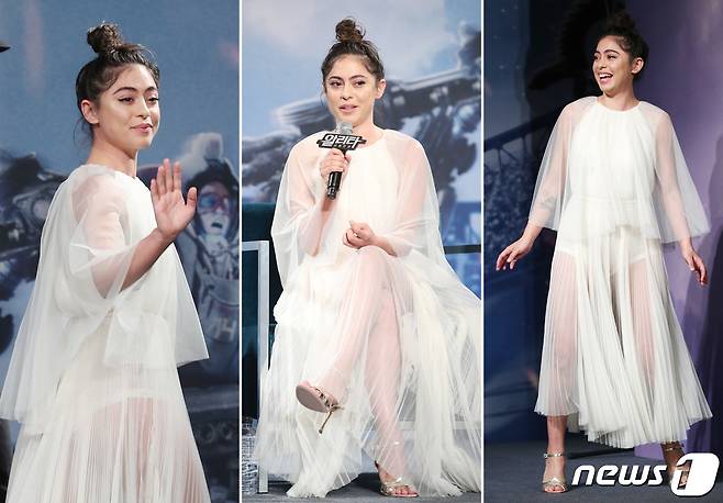 배우 로사 살라자르가 24일 서울 영등포구 여의도 콘래드 호텔에서 열린 영화 '알리타 : 베틀 엔젤' 내한 기자간담회에 화이트 망사드레스를 입고 참석해 아찔한 매력을 발산하고 있다.