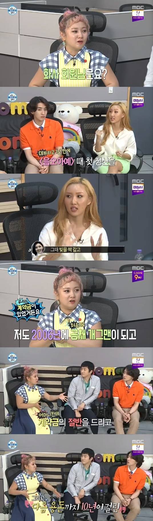 5월 10일 방송된 MBC '나 혼자 산다'에서 마마무 화사는 "언제 첫 정산을 받았느냐"는 질문에 "'음오아예' 때 첫 정산을 받고 빚을 갚고 용돈도 드렸다"고 말했다.