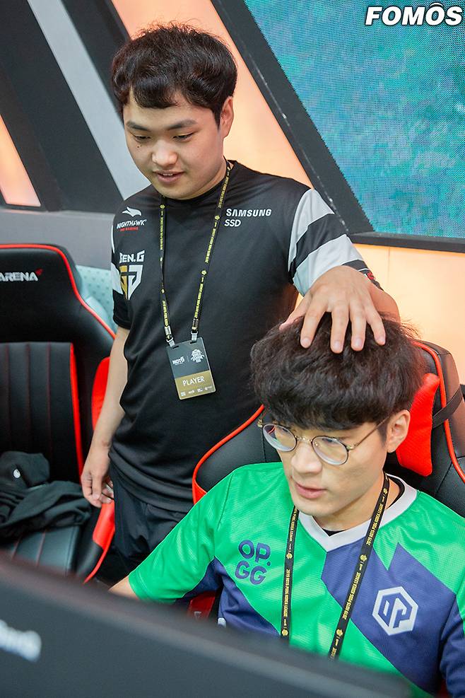 29일 서울 올림픽공원 K아트홀에서 '2019 펍지 코리아 리그(PKL)' 페이즈2 2주 2일차 경기가 열린다. 지난 20일 개막한 PKL 페이즈2는 총 6주간 매주 월-수-토요일 경기를 가진다. 이날 경기에는 A조와 C조의 경기가 진행된다. OP 게이밍 레인저스 'DG98' 황대권과 젠지 '피오' 차승훈이 대화 중이다.