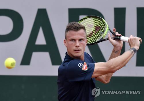 epa07602938 Marton Fucsovics of Hungary plays Diego Schwartzman of Argentina during their men?s first round match during the French Open tennis tournament at Roland Garros in Paris, France, 26 May 2019. EPA/JULIEN DE ROSA