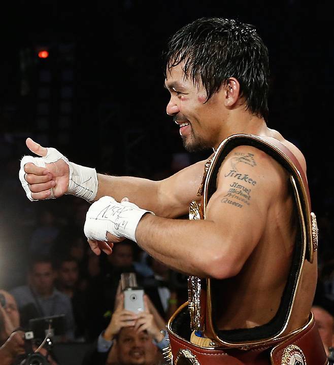 파키아오는 전설이 됐다. 웰터급까지 무려 8체급을 석권하는 위업을 달성했다. 동양에서 온 이방인에게 보낸 차가운 시선은, 2008년 12월 ‘골든보이’ 오스카 델 라 호야와의 대전에서 파키아오가 압승을 거두면서 바뀌기 시작했다. 그는 지금 복싱계는 물론 조국 필리핀의 영웅이 돼 있다.
