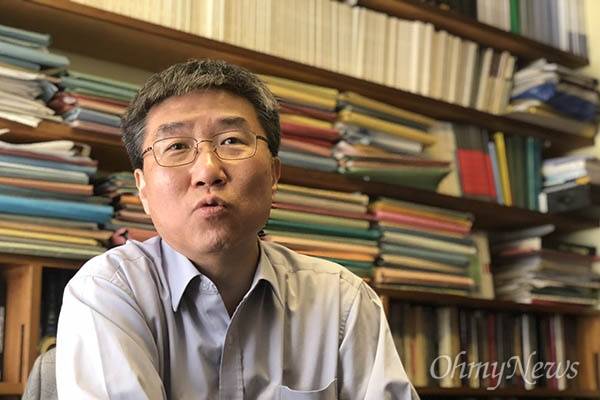 | ▲ "현 정부에 대한 슈퍼재정 비판? 오히려 더 써야 한다. 오죽했으면 보수적인 OECD가 우리나라의 재정 건전성을 보더니 '돈을 더 쓰라'고 이야기를 하겠는가." 지난해 8월 장하준 영국 케임브리지대 교수가 자신의 학교 연구실에서 기자와 만나 이야기를 나누고 있다. |