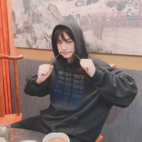사진 속 차은우는 검은색 후드 티셔츠를 입고 장난기 넘치는 포즈를 취하고 있다.