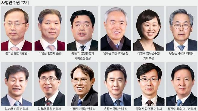 사법연수원 22기(1991년 입소)는 해마다 2월이면 동기 모임을 한다. 22기여서 2월에 만나기로 했다. 인연을 맺은 지 30년이 다 돼 가지만 아직도 50여 명씩 모여 얼굴을 본다. 스스로 ‘우애 하나만은 돈독했던 기수’라고 부른다. 사회에 나와서야 얼굴을 붉힐 일도 생겼지만 한솥밥을 먹으며 공부할 때는 이렇다 할 ‘말썽꾼’도 없었다. 22기에서는 두 명의 헌법재판소 재판관이 나왔다. 법원장과 검사장 등도 여럿이다. 변호사업계에선 팀장급으로 활약하고 있는 파트너변호사들이 즐비하다.