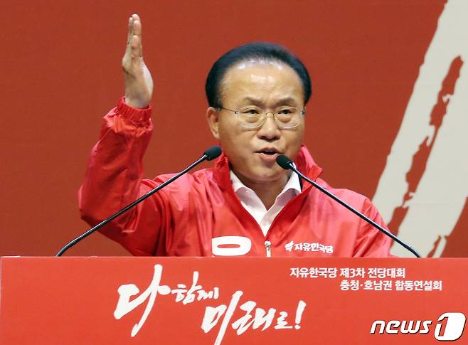 (대전=뉴스1) 김명섭 기자 = 자유한국당 2.27전당대회 최고위원에 출마한 윤재옥 후보가 14일 대전 한밭체육관에서 열린 충청·호남권 합동연설회에서 지지를 호소하고 있다. 2019.2.14./뉴스1