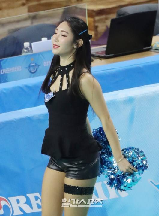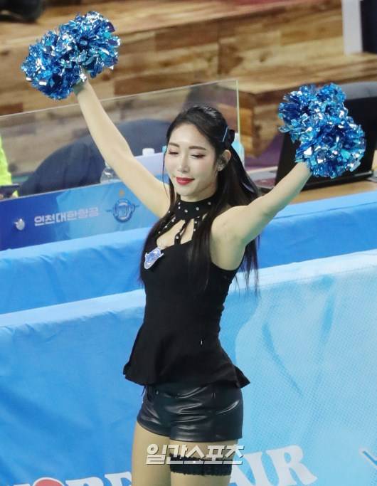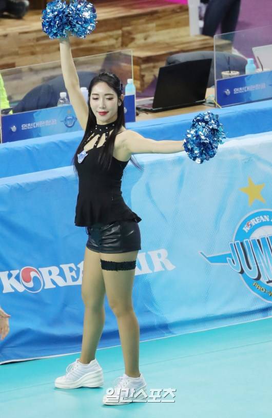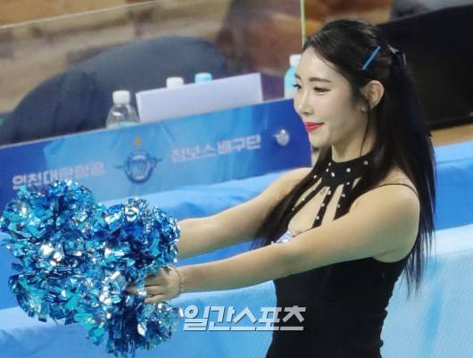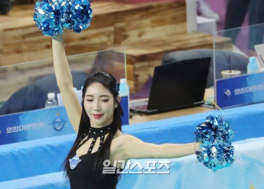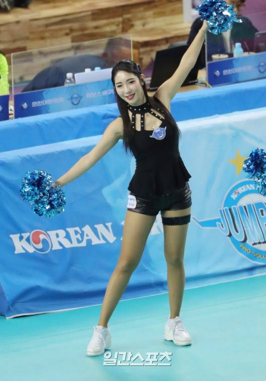 도드람 2018~2019 V-리그 남자부 대한항공-삼성화재 전이 15일 인천 계양구 봉오대로 인천계양체육관에서 열렸다. 이아람 치어리더가 화려한 율동으로 팬들의 시선을 사로잡고 있다.