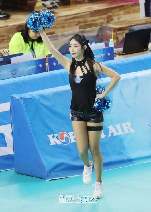 도드람 2018~2019 V-리그 남자부 대한항공-삼성화재 전이 15일 인천 계양구 봉오대로 인천계양체육관에서 열렸다. 이아람 치어리더가 화려한 율동으로 팬들의 시선을 사로잡고 있다.