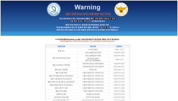 한편 기존에는 차단된 사이트에 ‘해당 사이트는 불법으로 접속이 불가능하다’는 문구와 함께 불법ㆍ유해정보 차단안내(warning.or.kr)가 제공됐지만, 새로운 차단 방식은 기술 특성상 사이트가 까맣게 보일 뿐 경고 문구가 뜨지 않는다. 방통위 측은 “이용자 혼선 방지를 위해 방통위, 문화체육관광부 등 유관부처에서 새로운 접속차단 방식과 관련한 대국민 홍보를 진행할 예정”이라고 설명했다.