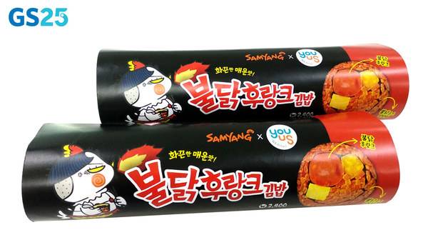 삼양식품은 18일 농협안심축산과 손잡고 핵불닭소스를 곁들인 가공란 2개를 세븐일레븐, 이마트24, 미니스톱 등 편의점에서 출시한다고 밝혔다. 반숙란과 훈제란 두 가지로, 핵불닭소스가 동봉돼 곁들여 먹을 수 있도록 했다. 삼양식품 관계자는 “1인 가구의 증가와 즉석 간편식에 대한 관심으로 가공란의 인기가 높아짐에 따라 핵불닭소스를 넣어 차별화한 제품을 선보였다”고 했다. 이날 지에스(GS)25도 자체브랜드(PB) 김밥에 불닭소스를 활용한 ‘삼양불닭&후랑크김밥’을 출시했다. 햅쌀밥에 불닭소스를 넣어 코팅하고, 소시지도 불닭소스와 함께 조리했다.