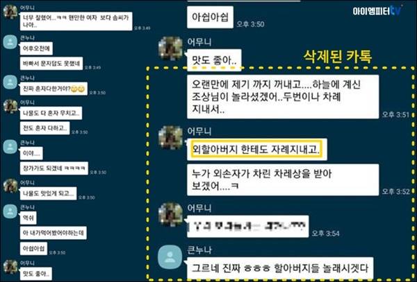 | ▲ 기사 본문 속에 나왔던 카톡 이미지(좌)에는 우측 카톡 이미지 일부가 삭제돼 올라왔다. |