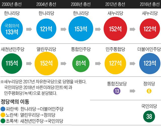 가장 쉬운 쇄신 메시지.. 화장하듯 '정당 색깔' 바꿔