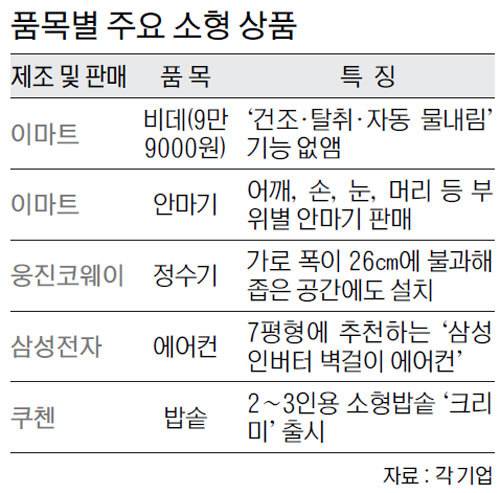 1인 가구를 겨냥해 필요한 기능만 갖춘 소형 상품이 인기를 얻고 있다.