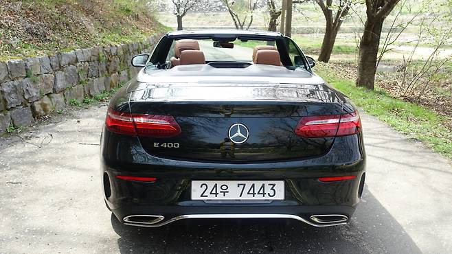 E400 카브리올레는 무릎 앞에 한 뼘 정도의 여유 공간이 있다. 따뜻한 봄 날, 온 가족이 함께 오픈 에어링을 즐길 수 있다.