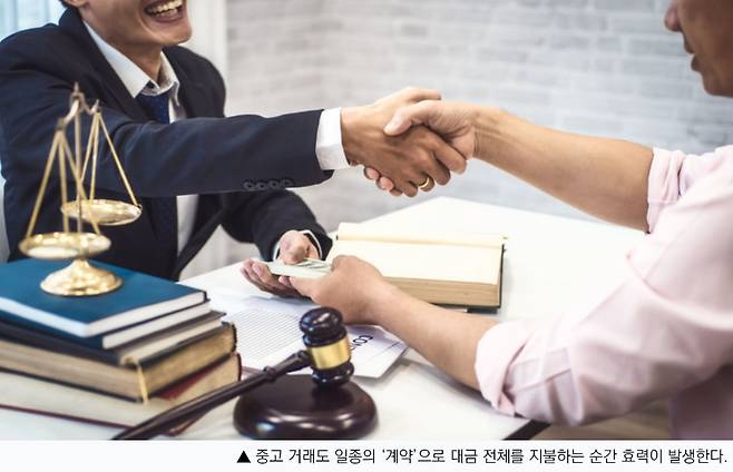 중고 거래시 유의할 점은 모든 판매와 소비에는 계약이 있고, 개인 간 중고거래도 사실상 계약의 형태라는 점이다. 구매자는 중고거래 시 보통 돈을 먼저 한 번에 지불하게 되고 이 시점에서 계약이 완성된다. 계약이 완성됐을 때는 단순 변심으로 환불하거나 교환할 수 없다.