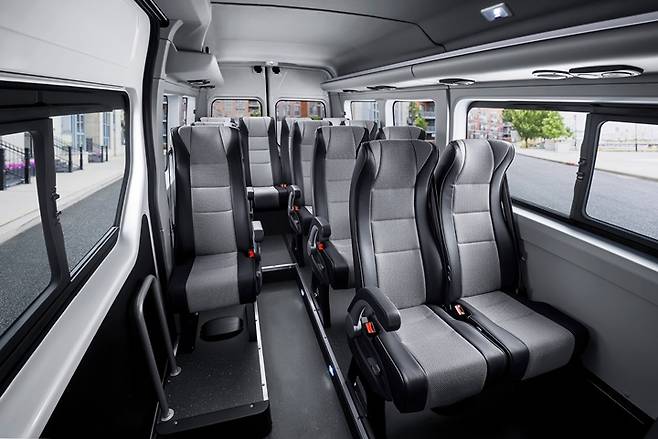 아울러 대형 플러쉬 글라스를 통해 탁 트인 개방감은 물론, 통풍 및 환기성까지 높였다. 15인승 모델에는 전동식 스텝(발판)을 기본 장착해 승하차 편의성도 극대화했다. 탑승객을 위한 배려는 높은 차체 전고에서도 느낄 수 있다. 13인승 2,500mm / 15인승 2,495mm에 이르는 높은 전고 덕분에 실내에서도 머리를 숙일 필요가 없다.