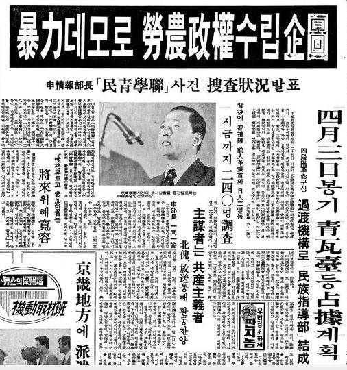 | ▲ 민청학련 사건을 보도한 1974년 4월 25일자 동아일보 |