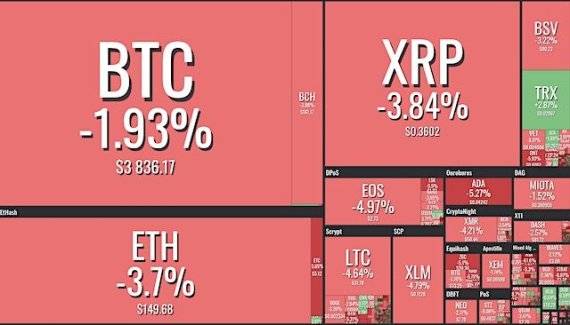 ■암호화폐 내림세, 비트코인 3800달러대